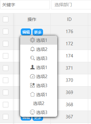 {title:'选项2', icon:'layui-icon-notice', event:'more2'},