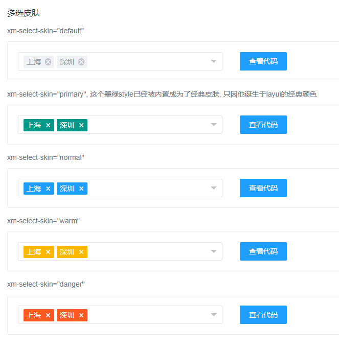 xm-select-skin 皮肤 xm-select-skin=" default | primary | normal | warm | danger "