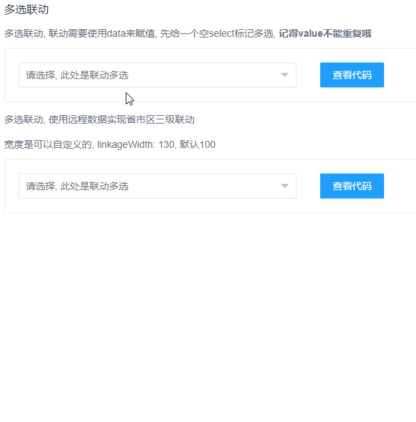 基于 layui 的 select 多选解决方案。支持:多选、分组、取值&赋值、选择监听、搜索、启用&禁用、多选皮肤、重复选、下拉方向、显示数量、选择数、 远程搜索、动态数据、动态创建、 搜索过滤 、快捷操作、选项模板 、多级联动等。